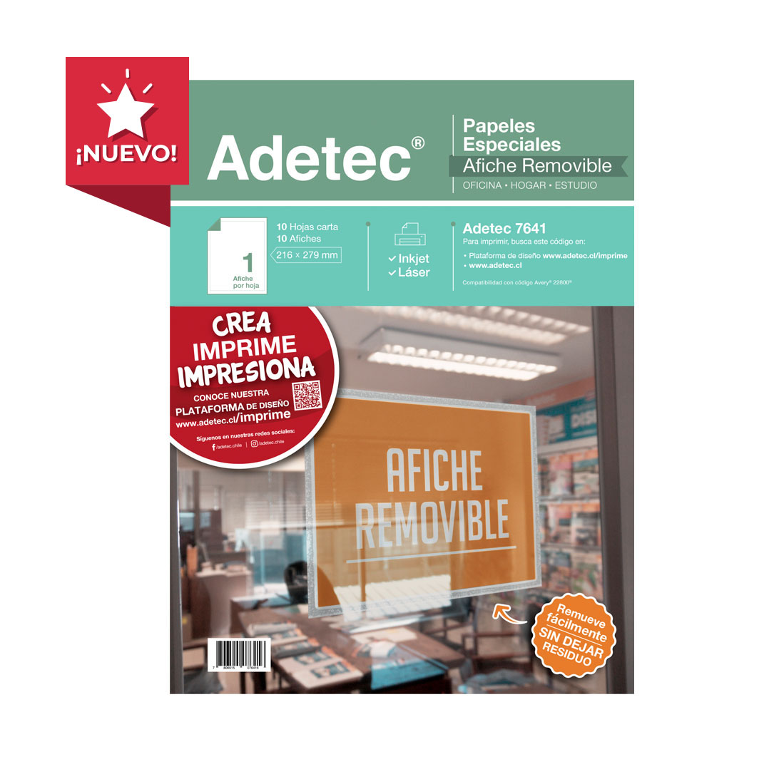 Imprimible por ambas caras, ideal para adherir sobre vidrios y paredes sin dejar ningún residuo
